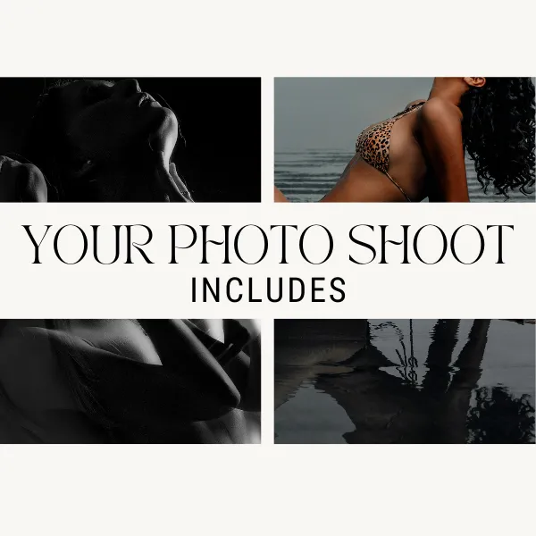We will spend 1.5 hours creating magic with 3 different sets / outfits. We love to start each set with layers to create variety, to reveal more underneath. Our studio is filled with lots of backdrops, furniture and props to play with.